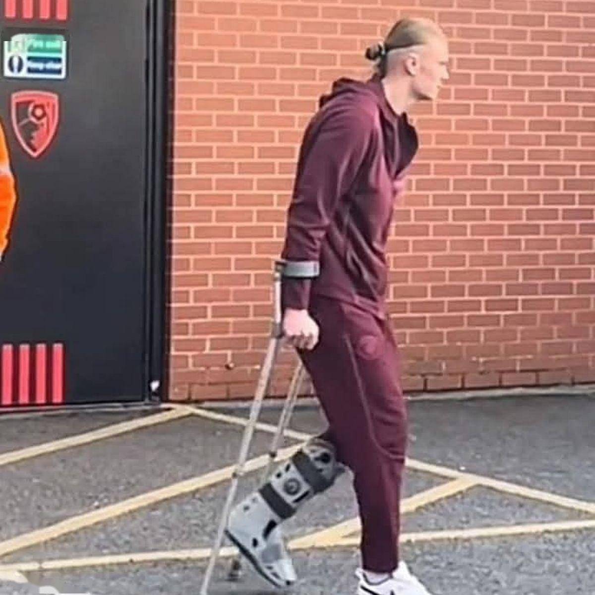但几分钟后,有人看到哈兰德拄着拐杖、穿着保护靴离开了球场,这表明他可能要缺席一段时间,而此时曼城正准备踢完这个令人沮丧的赛季的最后几场比赛。