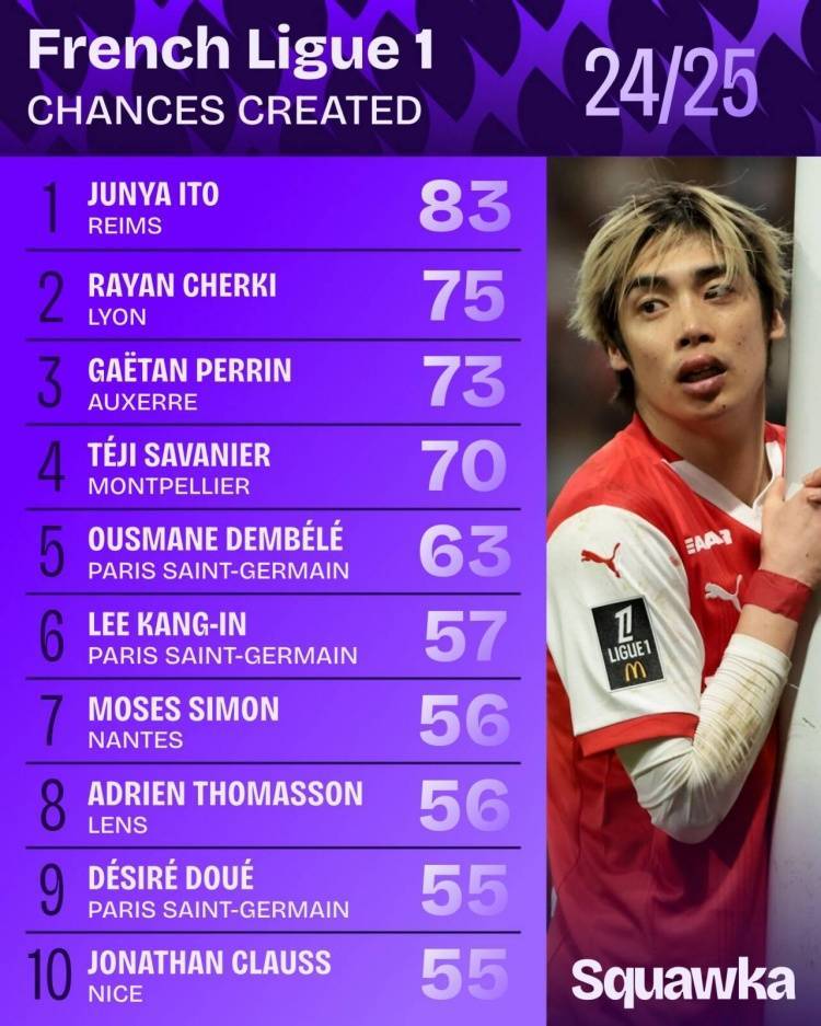 带不动!伊东纯也创造机会数居法甲榜首,但兰斯要踢保级附加赛… admin 2025年05月22日 20:30 196 0 直播吧5月22日讯 近日,数据平台Squawka对本赛季法甲联赛球员创造机会数进行统计,并列出了其中前十位的球员。其中效力于兰斯的日本快马伊东纯也以83次位居榜首,切尔基和盖坦-佩兰分别以75次和73次位列二三位,登贝莱63次排在第5,李刚仁57次排第6。尽管伊东纯也在法甲创造机会数遥遥领先其他球员,但他所效力的兰斯最终排名法甲倒数第三,将和法乙第三位的梅斯进行保级附加赛。伊东纯也本人也“仅”收获了4球3助攻的数据,且他将大概率因伤缺席球队的保级附加赛... 标签: #进行 #附加赛 #切尔基 #数据 #兰斯 #榜首 #伊东 #球员 #机会 #效力 #法甲 #伊东纯